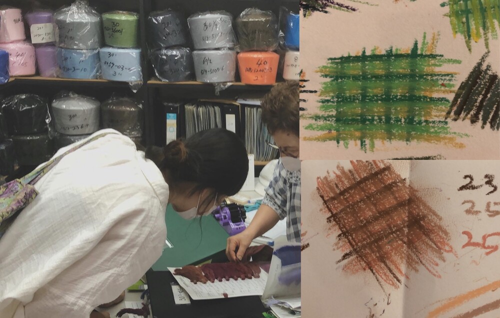 ▲실 샘플을 직접 꼬아보며 색감을 확인하던 과정