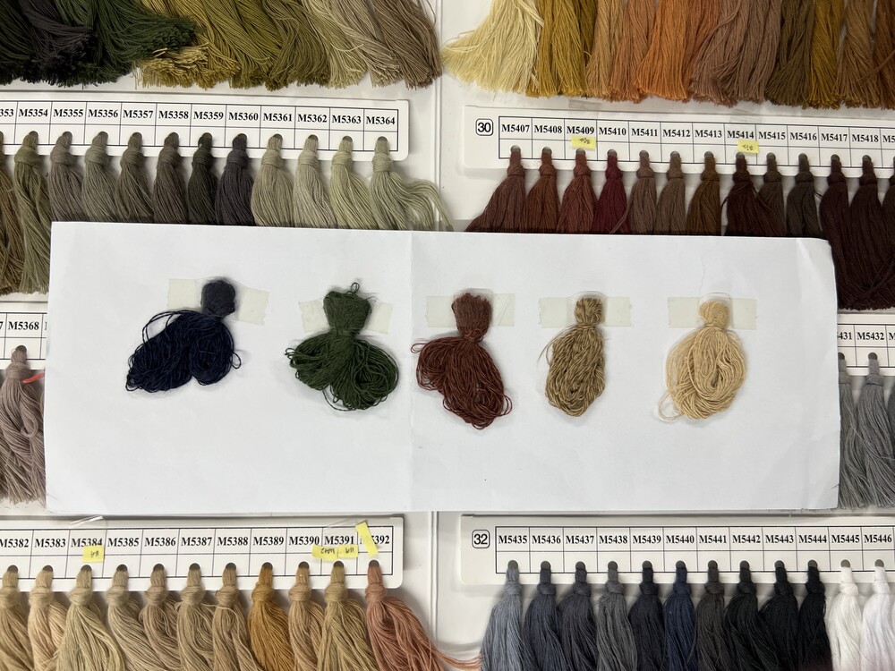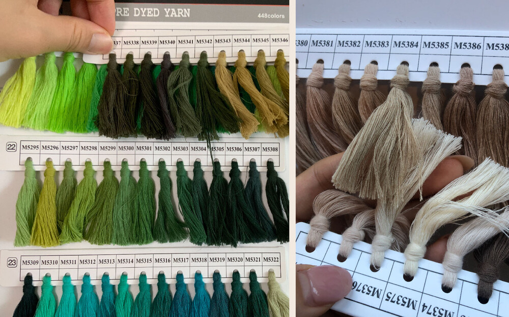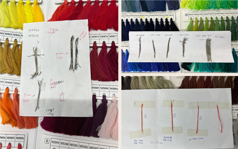 다양한 색조합을 테스트해보며, 최종적으로 두 색상의 실을