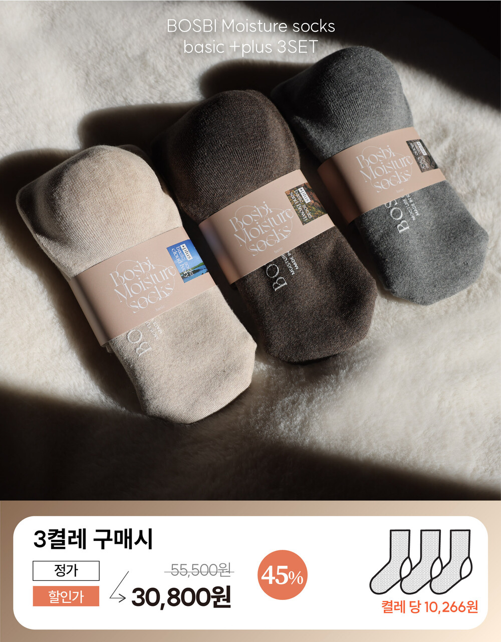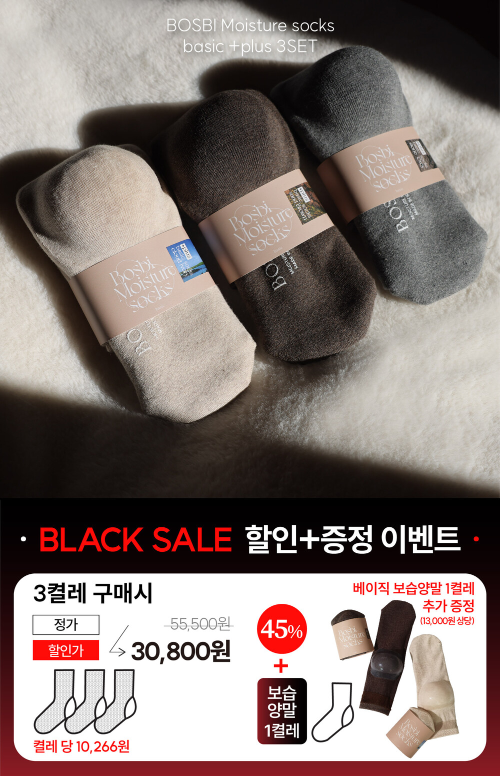 [3SET +plus] 보스비 기모+plus 보습양말 3켤레 특가
